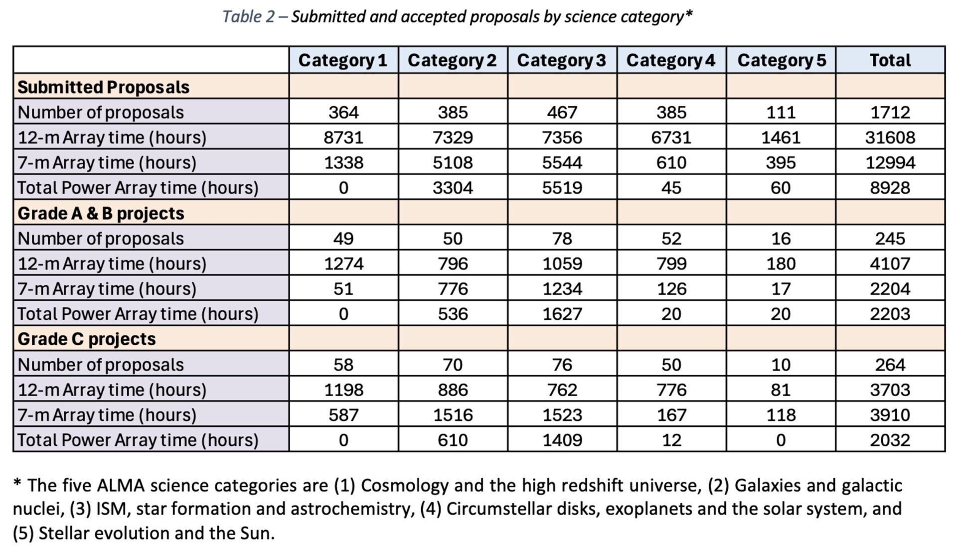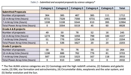Cycle 11 submitted and accepted proposals by science categories. Credit: ALMA (ESO/NAOJ/NRAO)