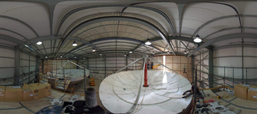 360 degree panorama showing two dishes of a European antenna for ALMA during their construction. © (ESO)