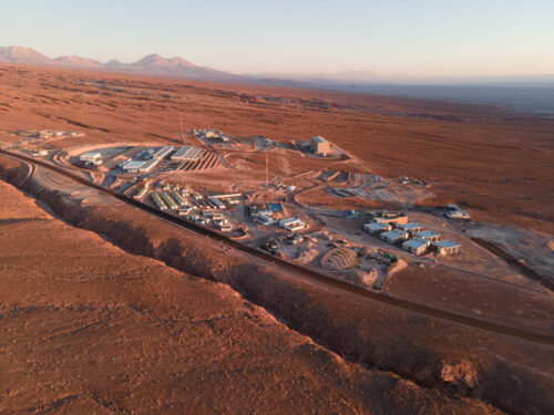 Wonderful view from the ALMA Operation Support Facility (OSF) at sunset. Located at 2,900 meters above sea level in the middle of the Chilean Andes, it is where most of the observatory's activities are carried out, housing laboratories, offices and workshops. In the foreground on the right, the indoor sports facility and the staff Residencia.