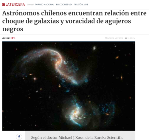 Astrónomos chilenos encuentran relación entre choque de galaxias y voracidad de agujeros negros